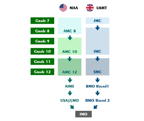 UKMT数学竞赛与AMC数学竞赛一样,根据竞赛难度和参赛对象分为不同的等级,包括UKMT—JMC、UKMT—IMC、UKMT—SMC等。