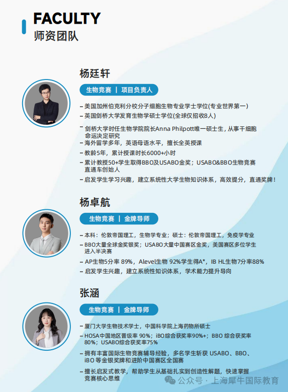 上海犀牛USABO培训课程设置
