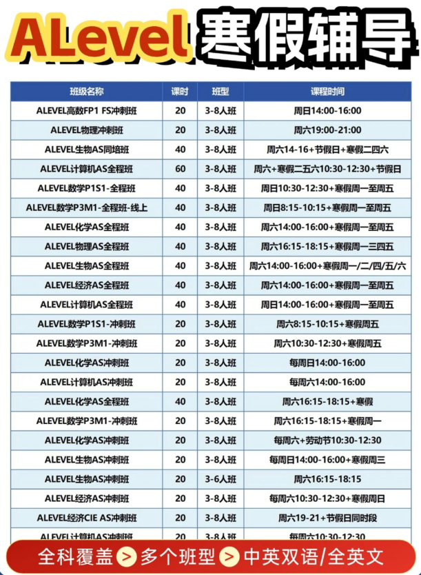 Alevel培训课程支持考试局:CAIE、爱德思、AQA