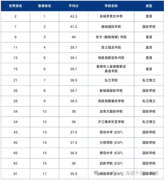 今年国外权威教育网站IB Schools公布了2025年全球IB学校百强榜,中国共有25所学校(内地8+香港17)上榜,其中香港的17所院校分别是: