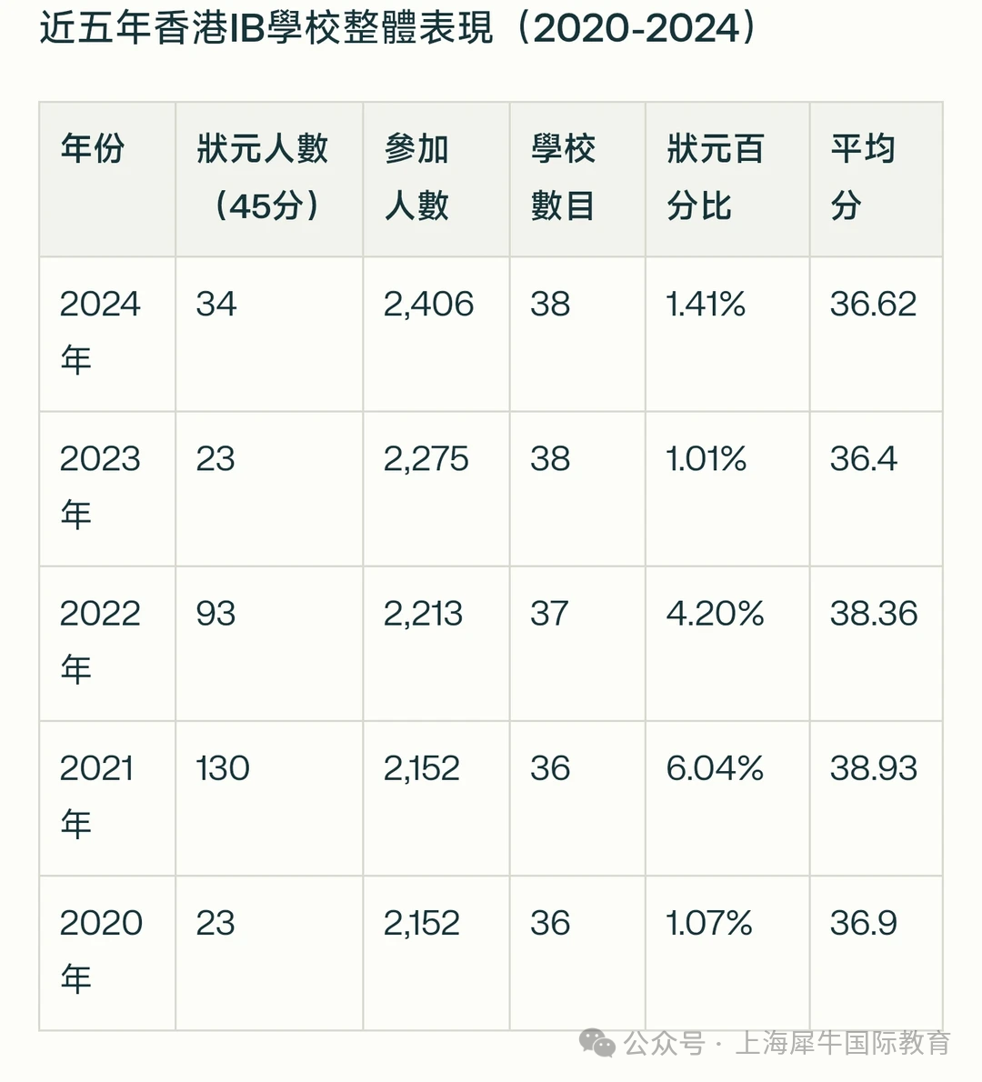 2025年全球IB大考放榜,香港状元人数:55名满分(45分)状元,占全球状元总数近8%40分以上考生达38.2%,较去年提升4.5个百分点。平均分36.86分,远超全球平均30.12分