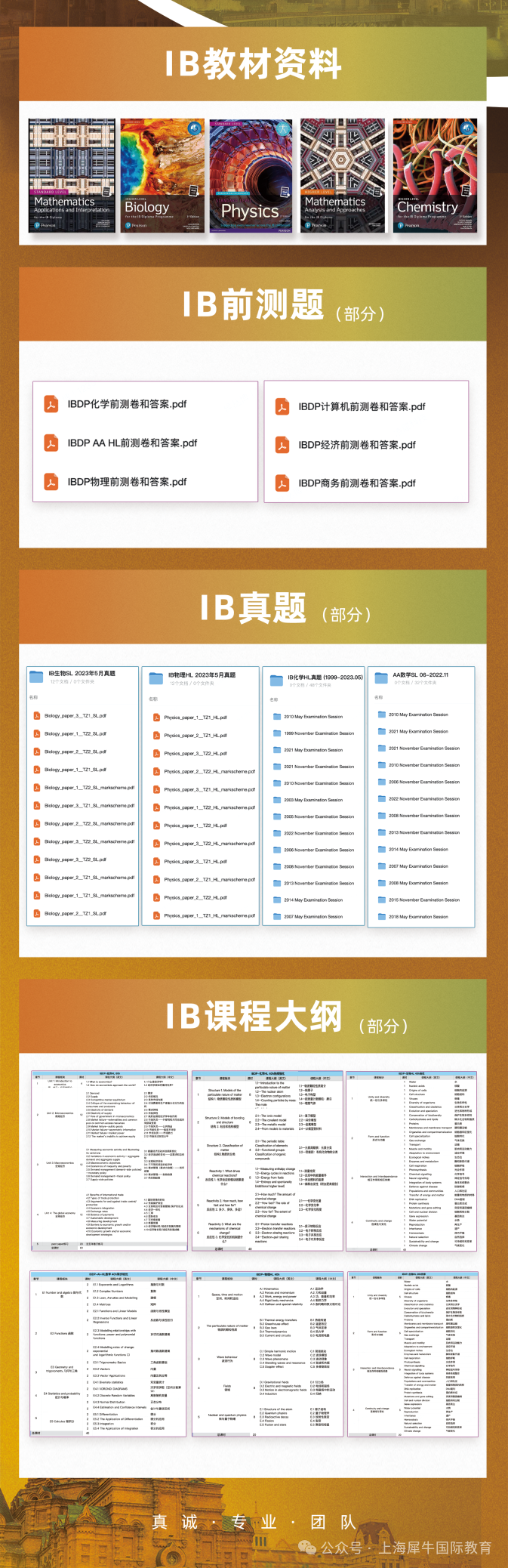 香港犀牛根据学生基础分为基础先修班、培优班、强化班跟冲刺班,涉及IB数学、物理、化学、生物、经济、计算机等多科目辅导,研发了多套IB化学内部资料,为学员建立学习档案,制定IB专属学习计划和选课指导,大学规划申请方案,定期反馈学习进度。