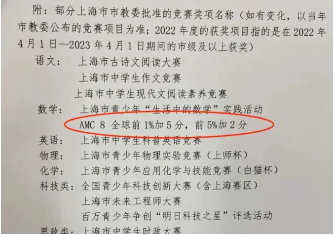上海:上海三公学校,在招生的时候明确要求学生提交AMC8竞赛的成绩,通常是需要学生达到20分以上,才能拥有竞争力的。另外像是国际学校,世外、平和双语等国际学校,要么在入学考试中直接采用AMC8真题,同样也是要学生提交AMC8竞赛的成绩的。