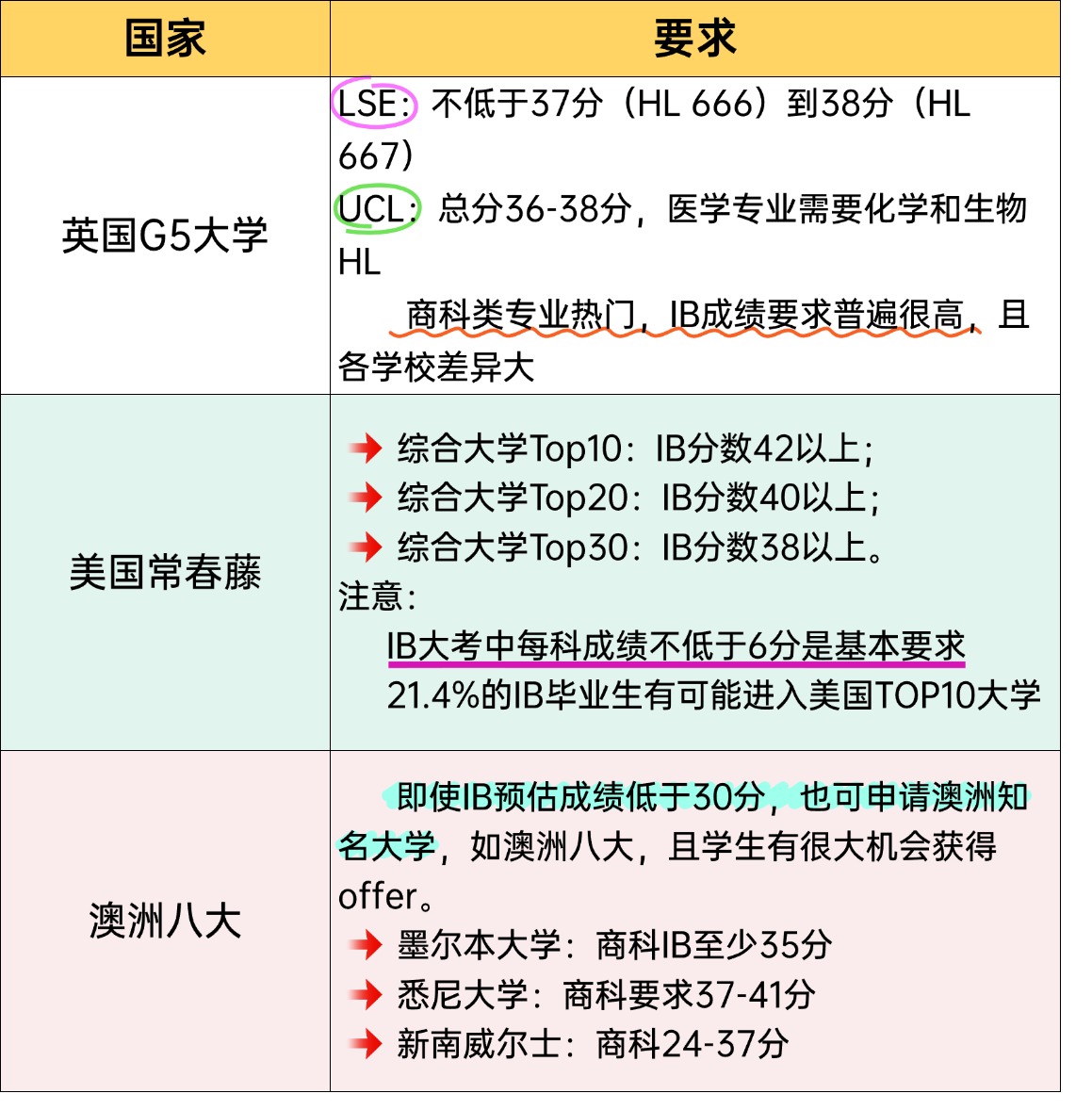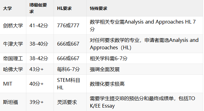 英美顶尖大学IB分数要求对比表