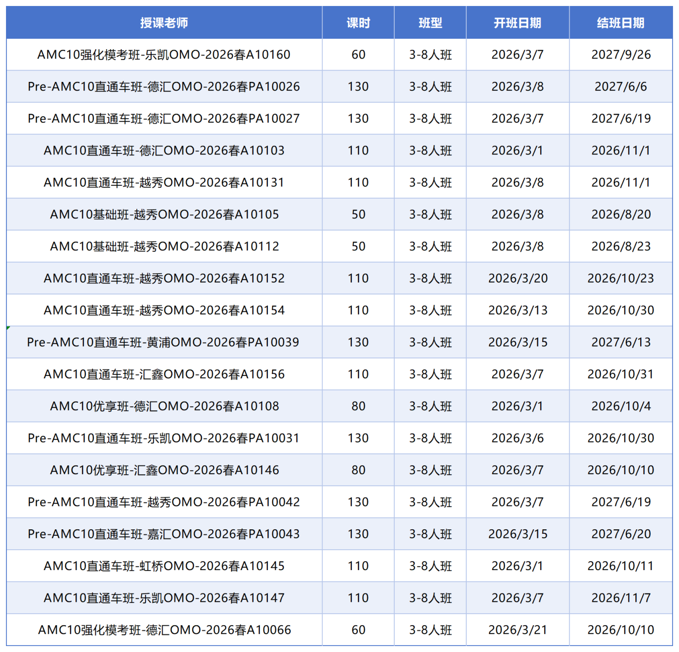 AMC10培训课程班型:3-8人小班/一对一