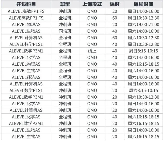 犀牛针对ALevel课程不同阶段的备考都开设有对应的ALevel培训课程,包含ALevel预习班,ALevel强化班,ALevel大考冲刺班,ALevel同步培训班,ALevel全日制脱产课程等等,多班型 + 全科目,量身定制专属学习方案,帮助同学们搞定每个备考阶段所遇见的问题。