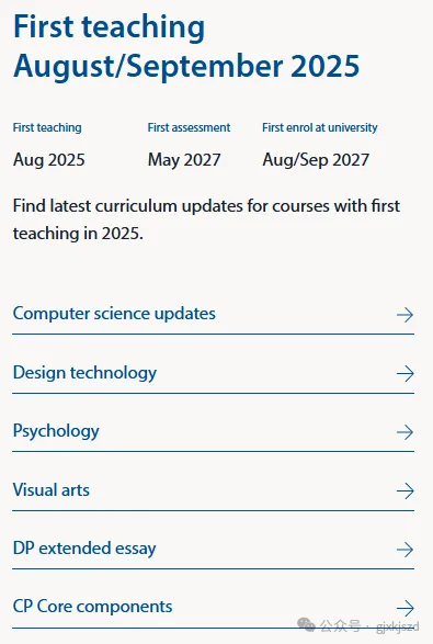 今年秋季将有6门IB课程启动新考纲,包括:5门IBDP课程和1门IBCP课程(CP Core组件)。纳入改革的课程将于2025年8月首次授课,第一次评估将于2027年5月进行。