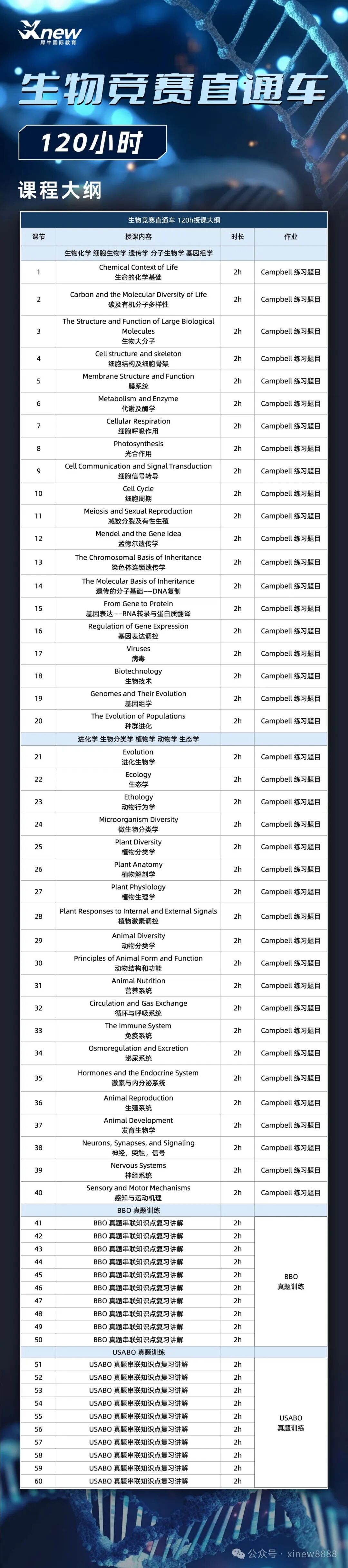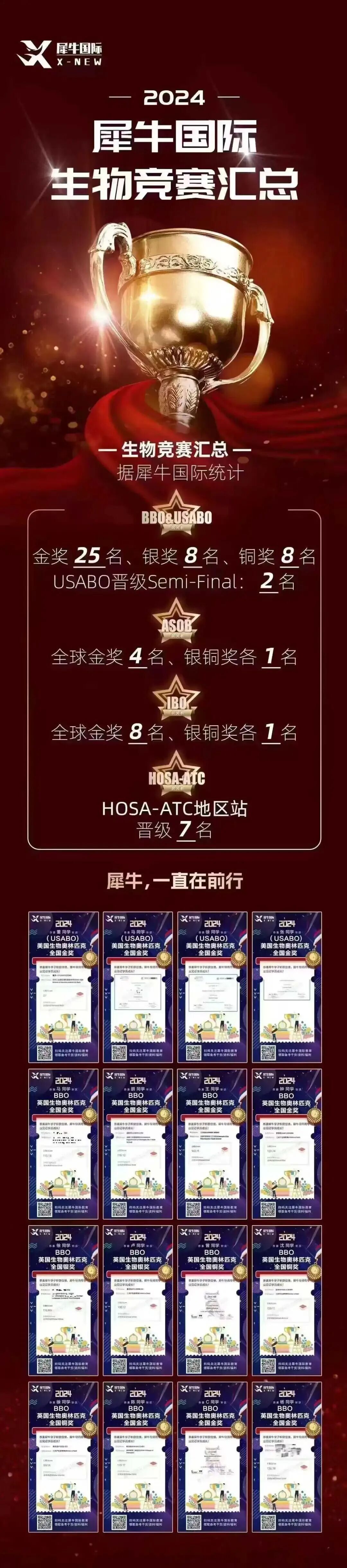 针对BBO和USABO竞赛备考,咱们犀牛开设有专门的BBO和USABO竞赛培训课程,专业的生物竞赛师资授课,帮助过多名在考试中取得一个不错的成绩。