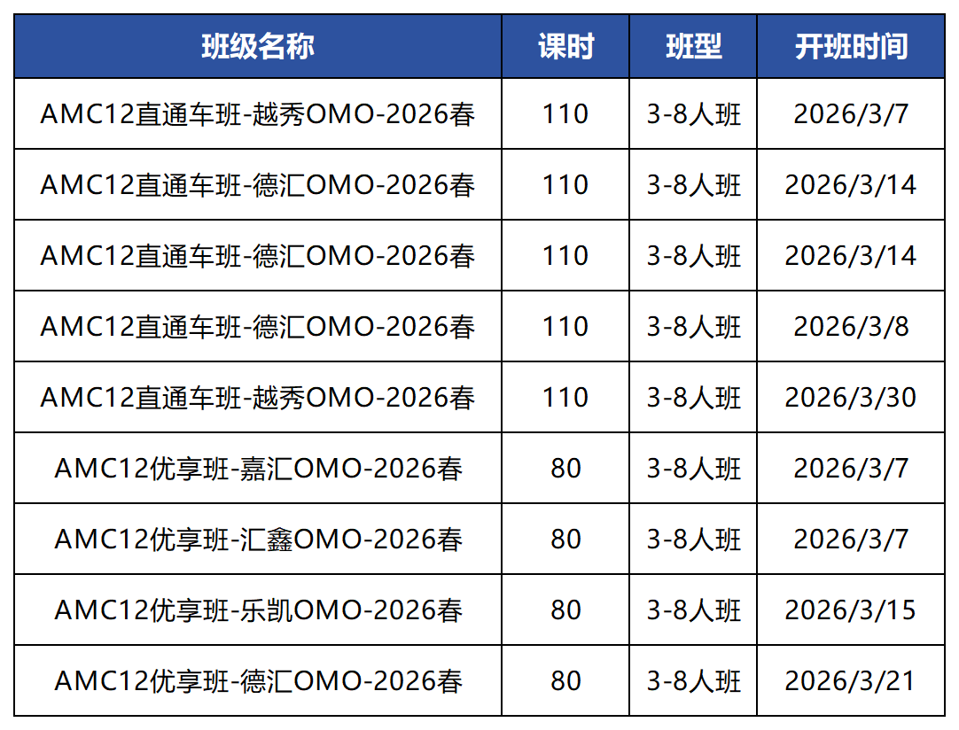 AMC12培训课程安排:小班课程/一对一