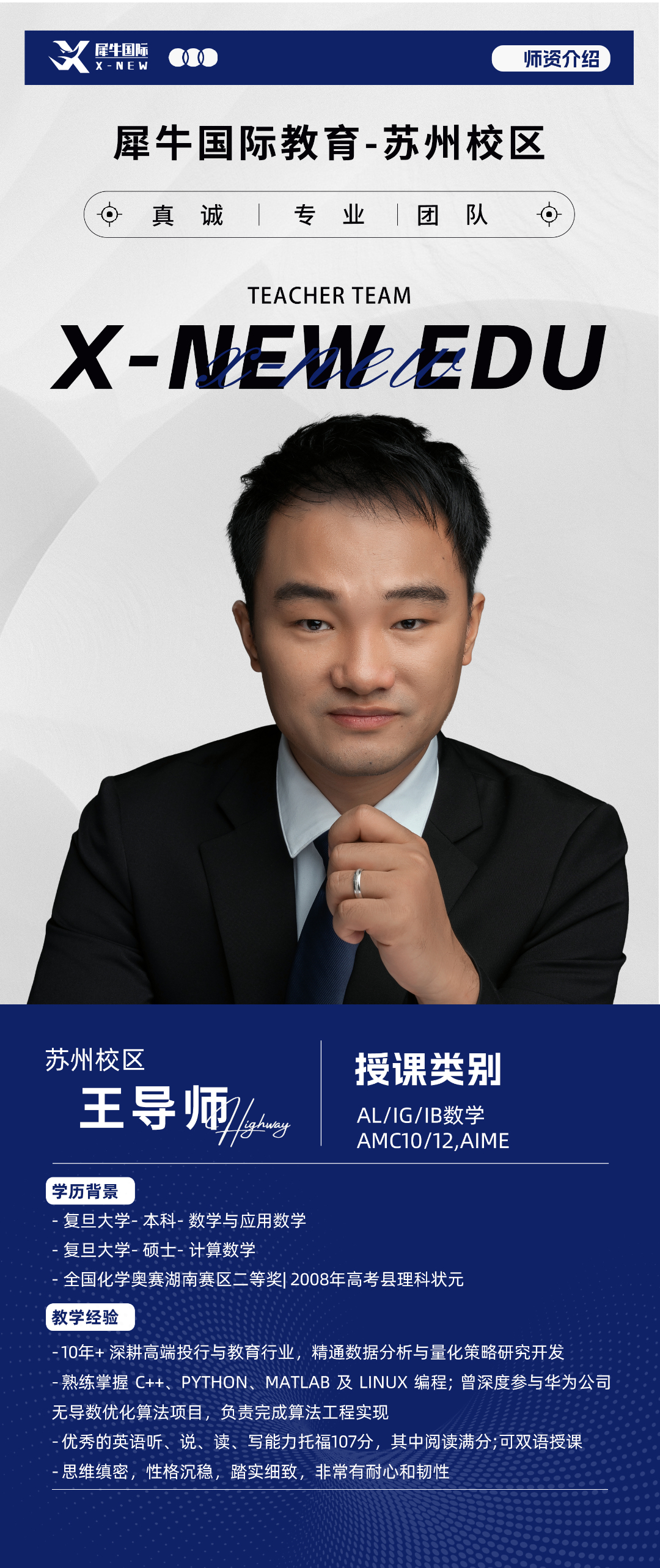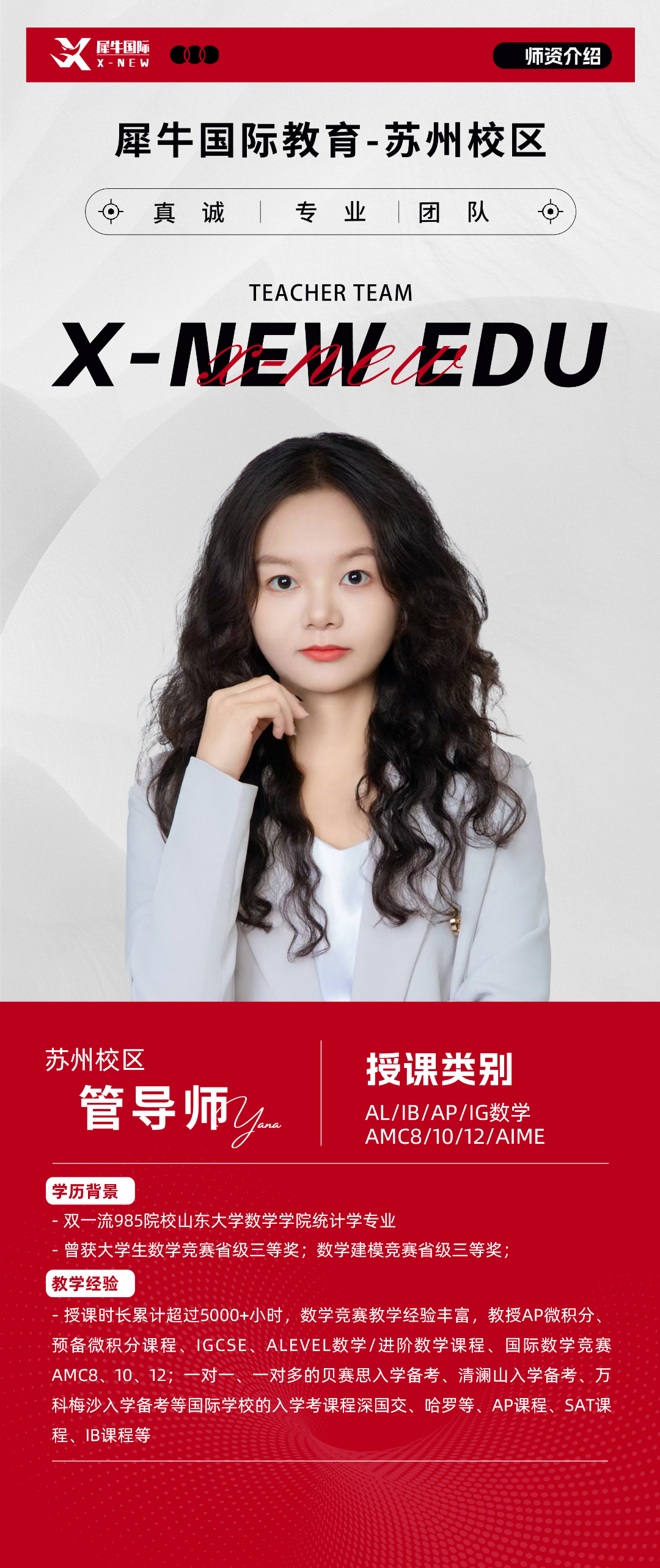 犀牛教育AMC培训课程,均由国内外顶尖名校毕业的专业教师团队授课,老师深谙AMC竞赛命题逻辑与备考思路!