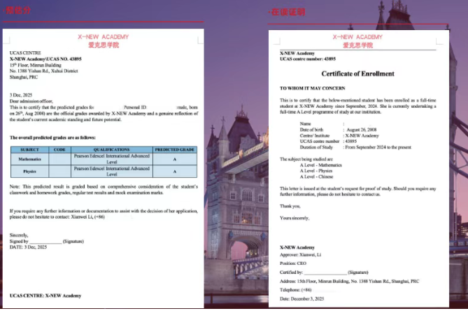 犀牛国际教育可为Alevel脱产学员提供预估分、成绩单、在读证明等UCAS系统认可的关键申请材料,解决脱产学生最核心的资质证明难题,同学们可以完全放心!!