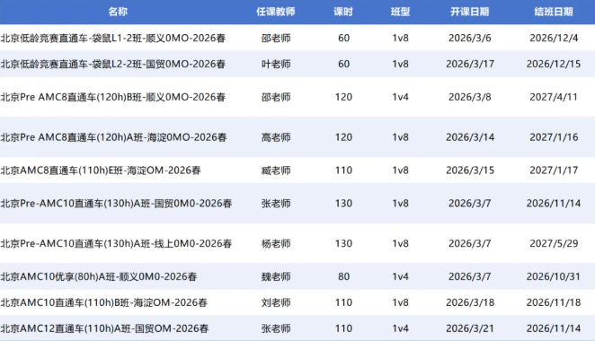 北京近期数学竞赛开班安排