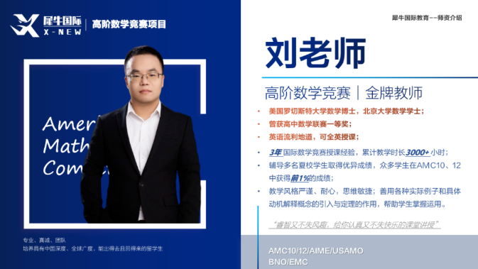 教学时长4年,累计教学时长6000+小时,熟悉AMC等各类国际数学竞赛