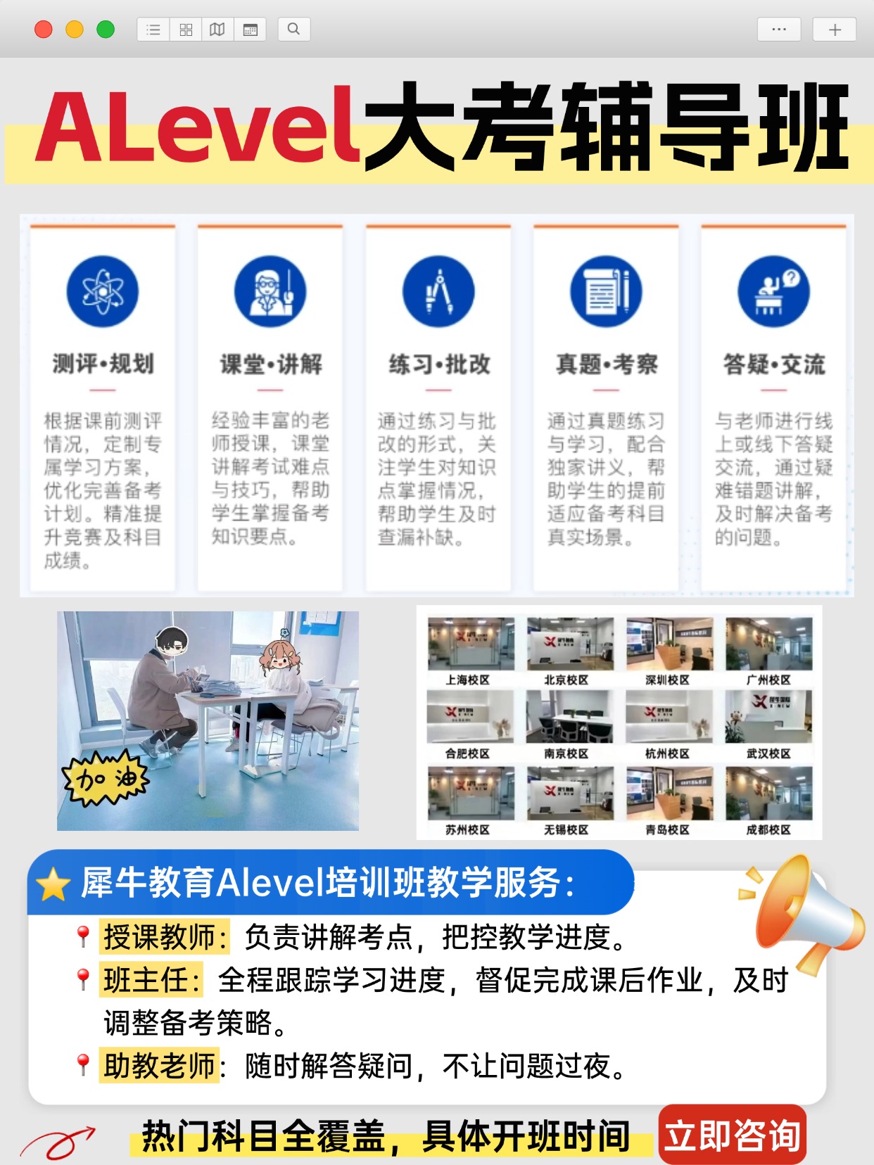 我们将以专业的师资力量、灵活多样的课程设置、全方位的学习支持,助力学生在ALevel大考中取得优异成绩,迈向更加辉煌的未来。