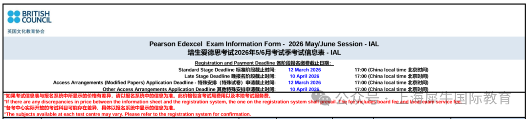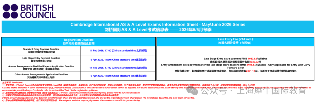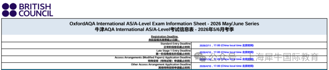 A-Level考试时间:2026年5月5日 - 2026年6月12日