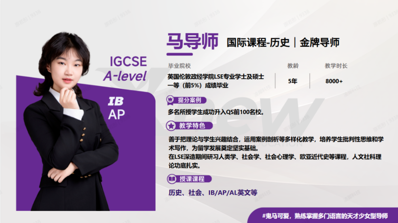 伦敦帝国理工硕士,辅导多名学员有显著提分效果,是一位博学多才的学霸型导师。
