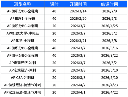 最新AP课程安排