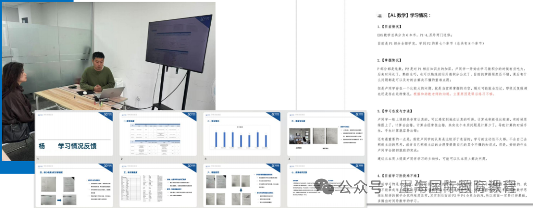 课程配备正课老师+教辅专业+服务督导,各司其职,从孩子课前到课后全方位服务,有问题随时答疑,家长也能及时了解孩子学习情况。