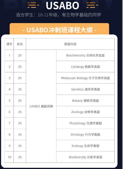 犀牛教育USABO生物竞赛20H考前冲刺班: