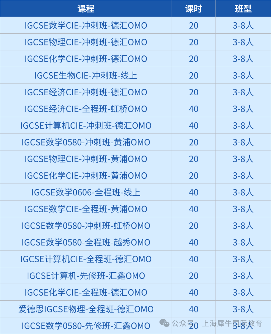 上海犀牛针对浦东的国际生,或即将转轨到国际学校的学生推出IGCSE数学、经济、物理、化学核心课程培训,用好师资、好服务、精细化教学帮助学生提分。