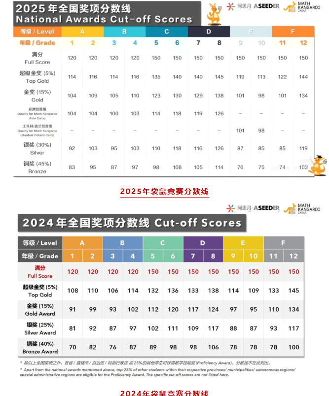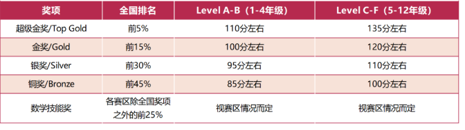 以下是2026年的袋鼠各等级预估分数线,同学们跟家长可以可以进行参考!