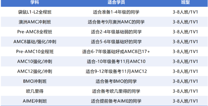 要知道袋鼠竞赛不是终点,而是数学思维进阶的起点!犀牛教育数学竞赛课程包含众多 而考过袋鼠,大部分学生都会积极参与到澳洲AMC以及AMC8竞赛课程相关备考中去!犀牛数学竞赛全年滚动开班,欢迎你来了解~~