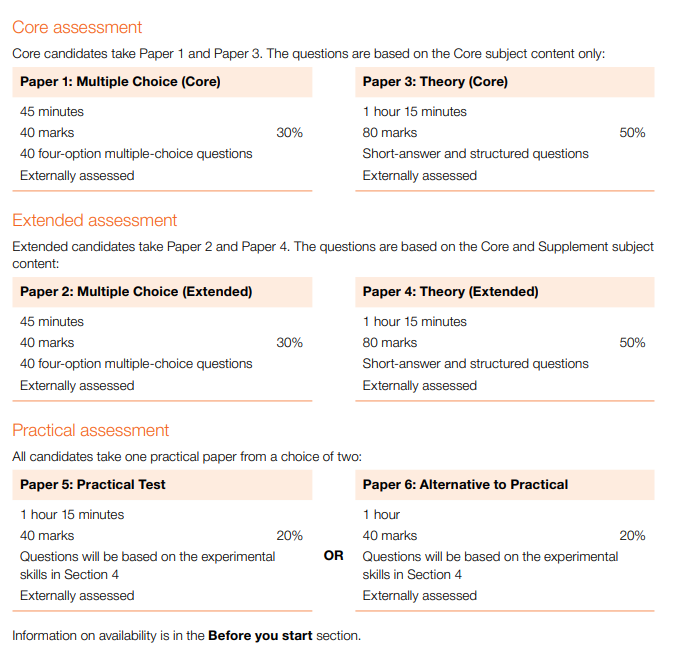 Paper 5:实验操作,考查实际实验技能,时长为1小时15分钟,满分40分,权重20%