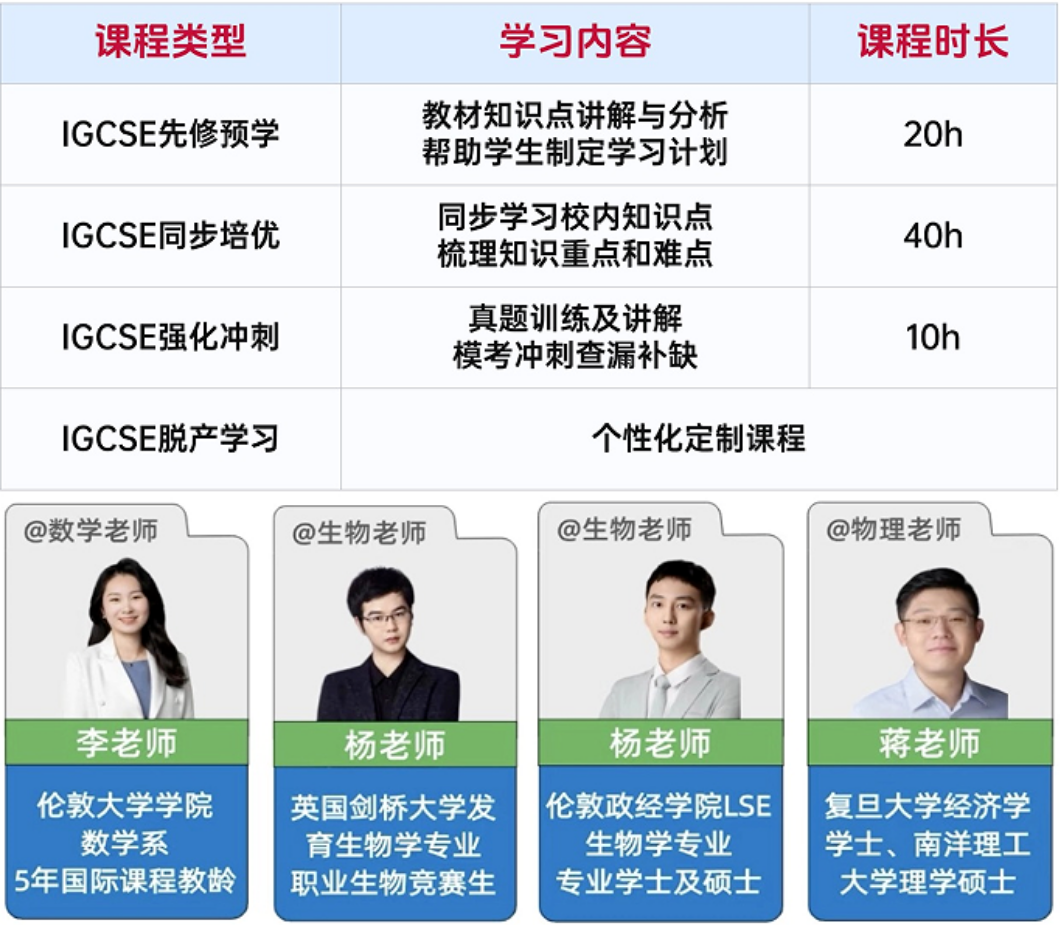 对于备考时间紧、基础薄弱、校内跟不上的同学,靠自学很难高效冲刺,选择专业的IGCSE 冲刺辅导,才能快速提分、少走弯路。
