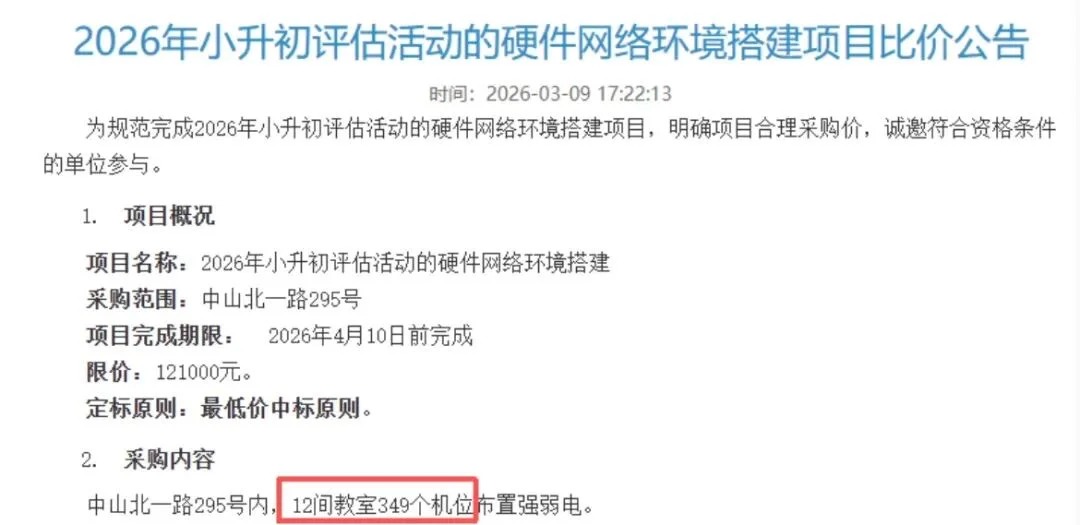 上外附中官网悄悄挂出“2026小升初评估活动”软硬件环境搭建比价公告 来划重点: