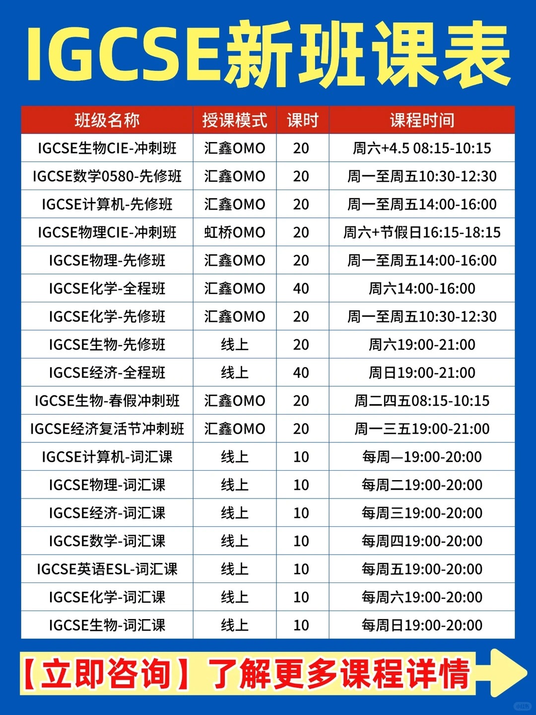 20小时IGCSE先修班:长线备考,一般每周一节课,主要进行知识点精讲,适合需要预习先修IGCSE新学科内容的同学