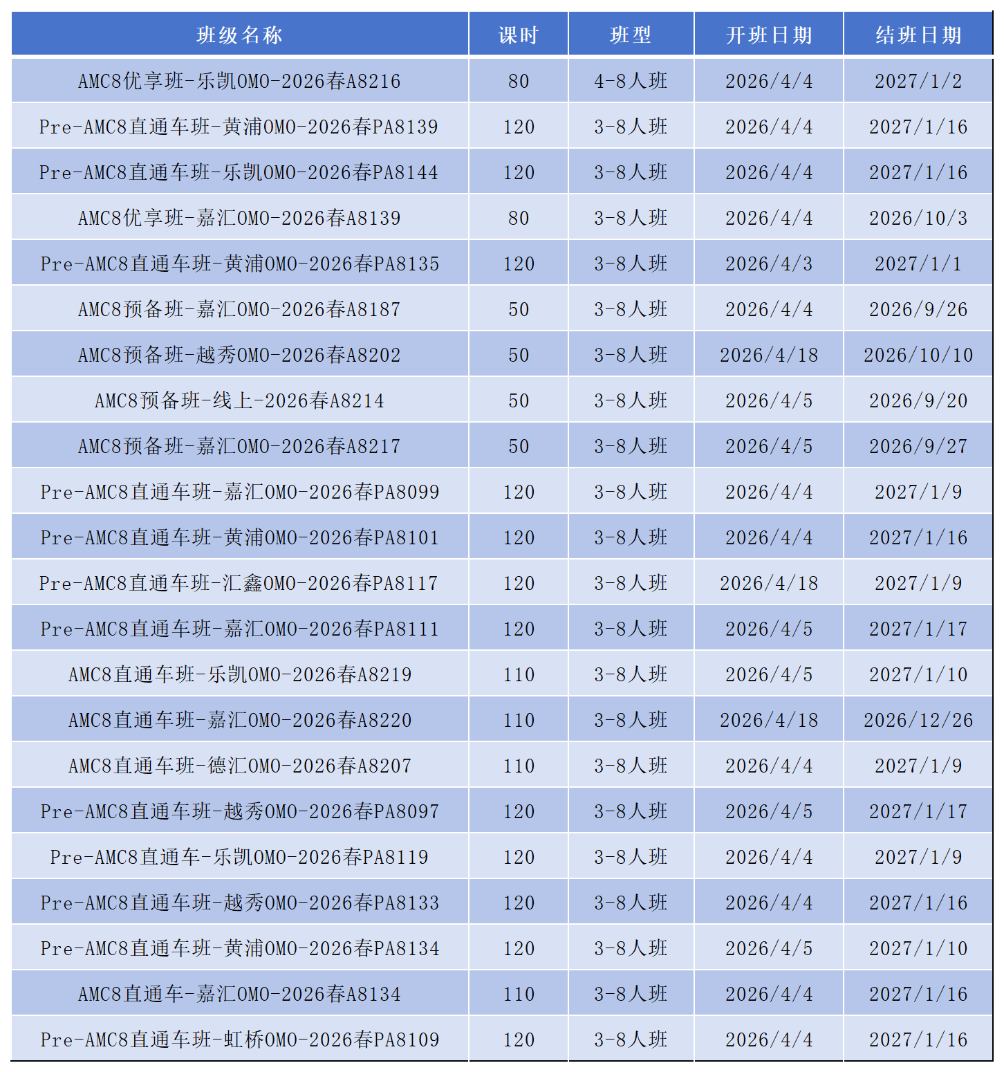 上海AMC8培训课程新班上线,支持线上/线下同步学习服务,全球学生均可选择~
