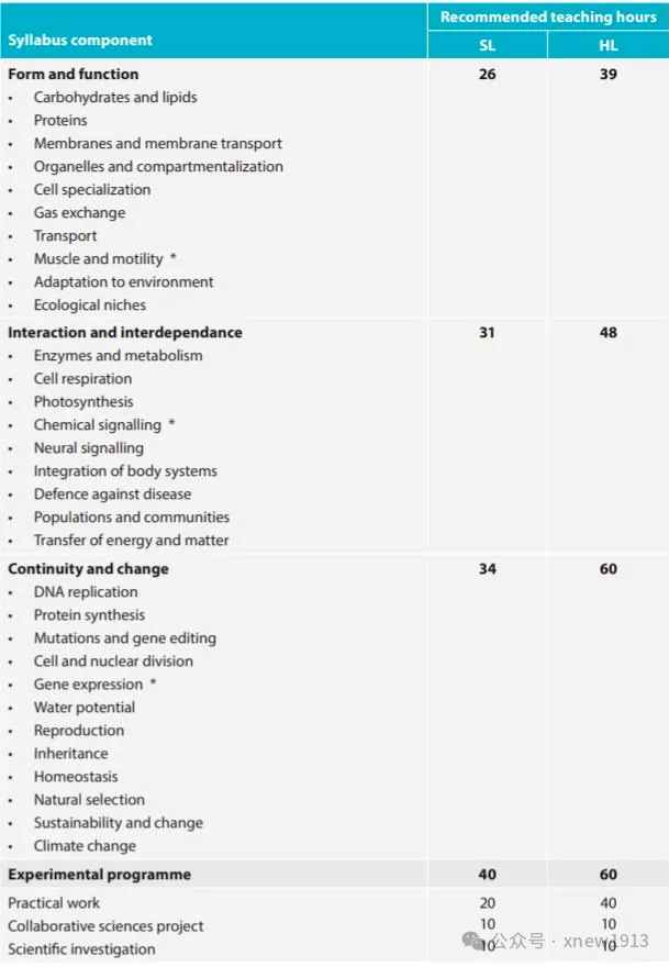 - HL课程的细胞超微结构和膜转运、蛋白质、基因改造和生物技术、碳循环、自然选择、细胞呼吸、减数分裂、消解、吸收和气体交换、光合作用等内容。