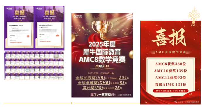 犀牛学员在2026\2025\2024年AMC8竞赛中取得了优异成绩。