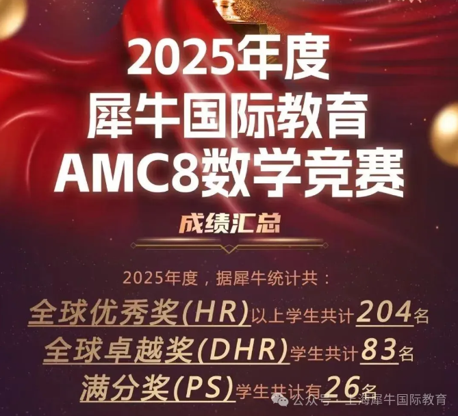 想冲刺上海三公等优质初中?浦东小升初家庭注意!AMC8 竞赛高分已成为择校核心加分项,直接提升申请竞争力,助力孩子抢占升学优势。上海浦东世纪大道附近哪家 AMC8 课程更靠谱?犀牛教育浦东校区 AMC8竞赛周末班、寒假班火热招生中,家门口的AMC8培训,通勤更省心!