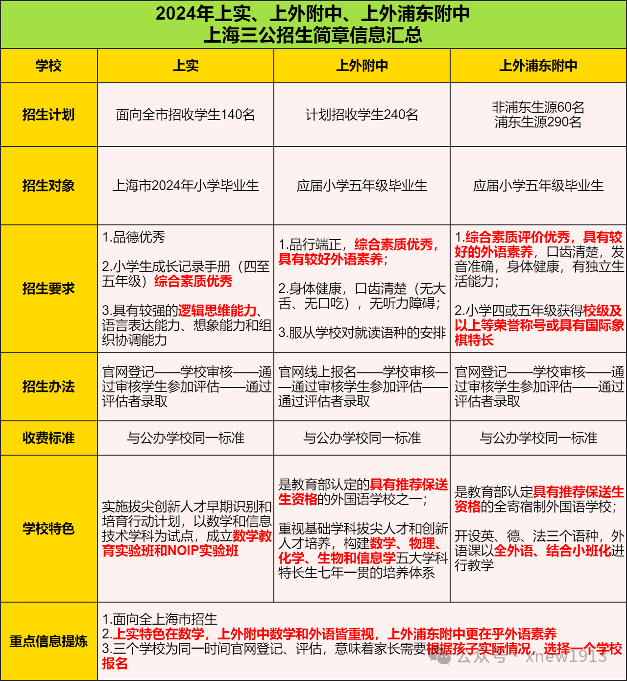 这个表格是根据2024年上实、上外附中和上外浦东附中,官方账号发布的招生简章整理而成,里面的重点信息已经标注、提炼,需要的家长可以长按保存~