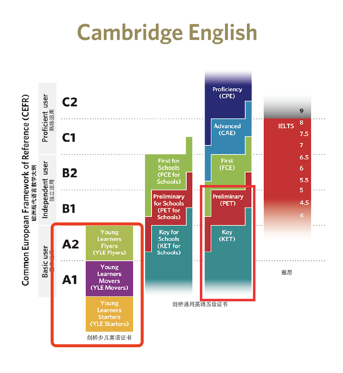 KET与托福、雅思等英语学习体系相衔接,方便孩子未来循序渐进地朝着更高的英语学习目标备考。