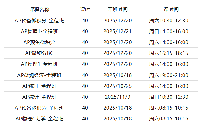 AP辅导课程类型:3~8人小班/一对一课程