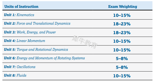 AP物理1在现有的七个单元基础上增加了Unit 8 fluids,这原本是物理2的第一单元。原本的七个单元内容也进行了重排。主要表现在: