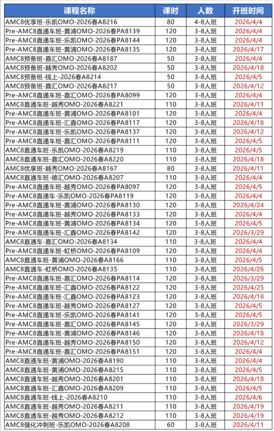 AMC8冲刺班:适合4-8年级,数学基础好,只想要提升AMC8竞赛的解题技巧与方法。