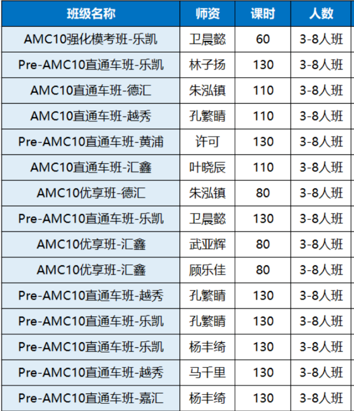 AMC10培训课程:适合9-10年级学生,找准学生AMC10遗留知识点,夯实数学基础,侧重灵活的数学思维和解题能力训练。