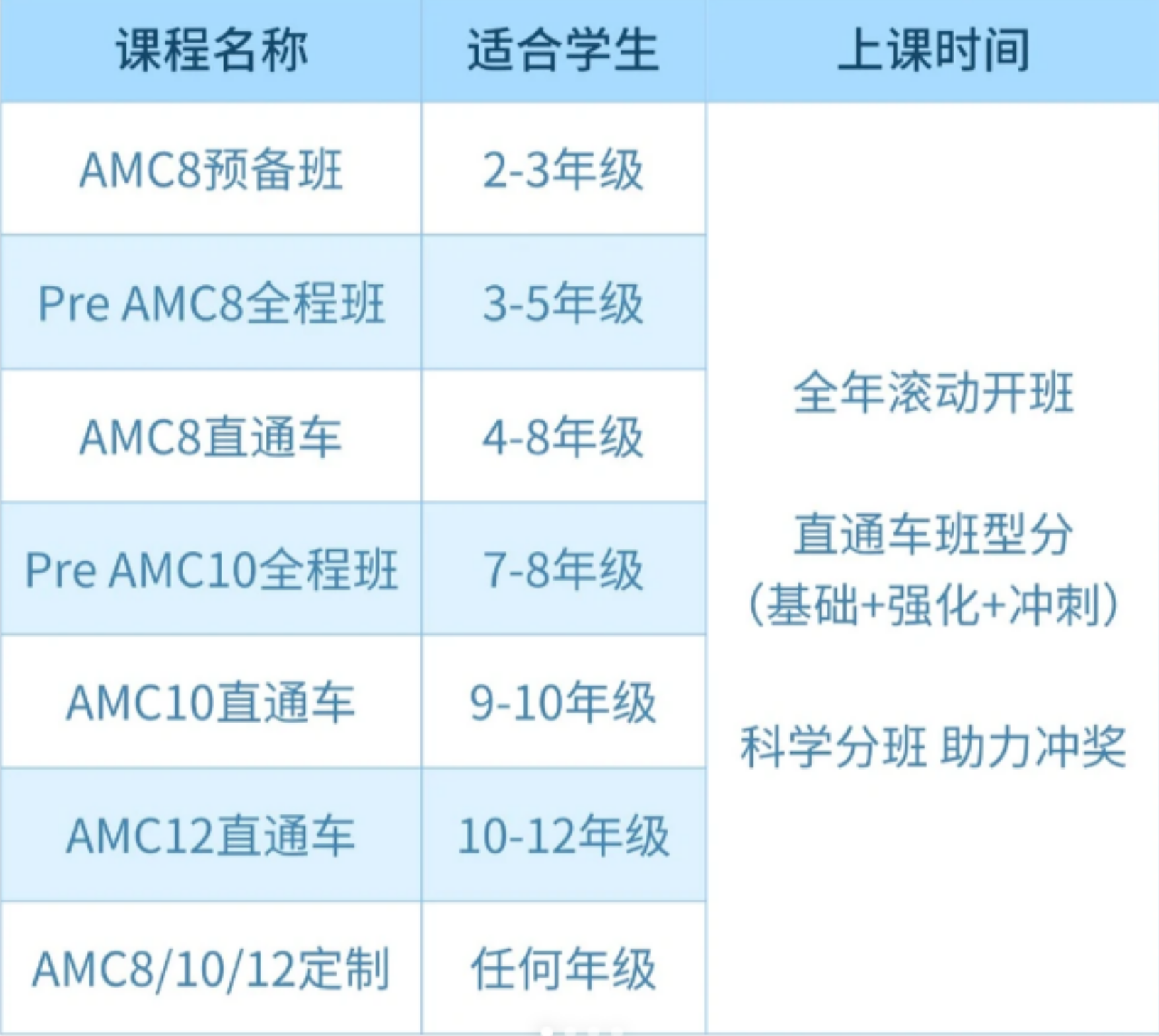 AMC8全程班:110课时,包含基础+强化+冲刺3个班型,分层教学,助力冲奖
