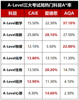综合来看,三大考试局在热门科目的A*率上各有千秋: