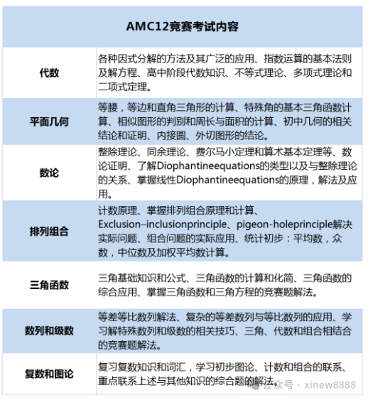 AMC12考点内容