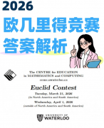 欧几里得数学竞赛(Euclid)作为加拿大顶尖高中数学赛事,其难度、命题趋势与后续备考方向,是众多国际高中、竞赛备赛学生及家长最关注的核心问题。2026欧几里得竞赛考试本月刚刚结束!今天给大家带来2026欧几里得竞赛考情分析,并给出考完欧几里得后的衔接备考规划,帮你精准把握赛事核心、高效规划后续数学竞赛与升学路径!需要2026欧几里得真题答案可以联系客服免费领取~