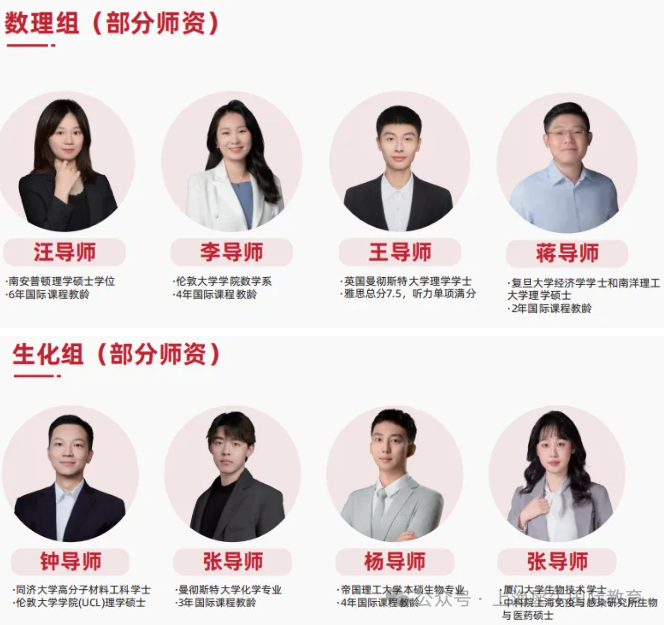 上海犀牛师资均为G5名校、清北复交硕博背景,平均教龄5年以上,部分具备A-Level考官经验 。教师精通CAIE、爱德思、AQA三大考试局考纲与评分规则,擅长提炼高频考点、总结解题模板,如数学向量题技巧、化学有机反应记忆表等,直击Alevel学生学习痛点。