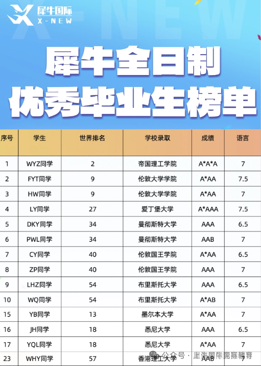 近年来,犀牛A-Level脱产学员成绩斐然,超90%学员斩获QS百强大学offer,多名学生成功拿下牛津、剑桥、帝国理工等G5名校录取 。上海徐汇校区凭借区位优势、硬核师资与完善服务,成为本地A-Level脱产备考的标杆选择,助力学子以高效路径圆梦世界顶尖学府。