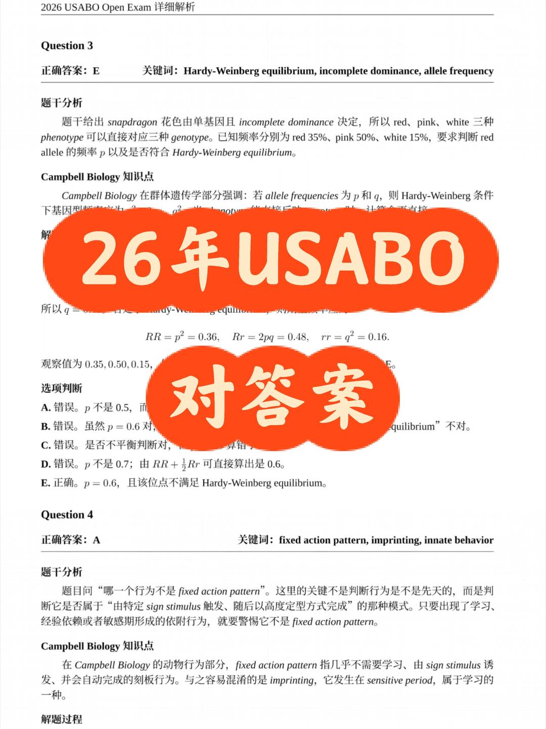 2026USABO真题答案解析已出!可以来对答案啦~今天给大家整理了2026USABO考情解析,今年的USABO真题难不难?重点考什么?一起来看看吧~