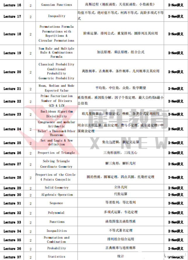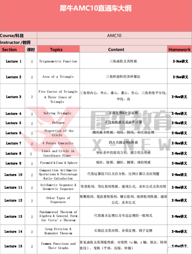 AMC10辅导班 课程大纲: