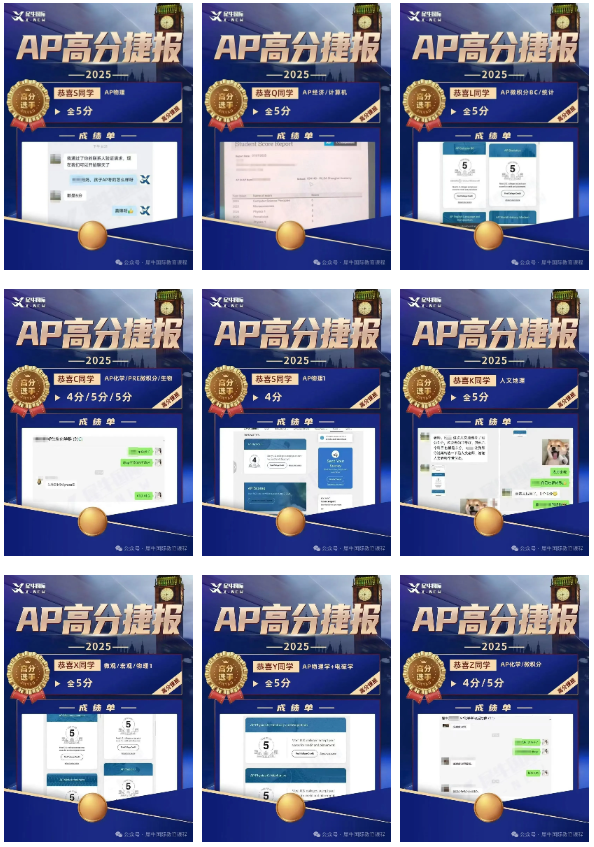 犀牛国际教育2025年AP夏季大考战绩非常亮眼,学科辅导学员提分率超高,不管娃是8年级打基础、9年级入门,还是10年级冲分、11年级攻核心,犀牛AP课程培训都有对应的课,完美适配你的AP 课程规划!