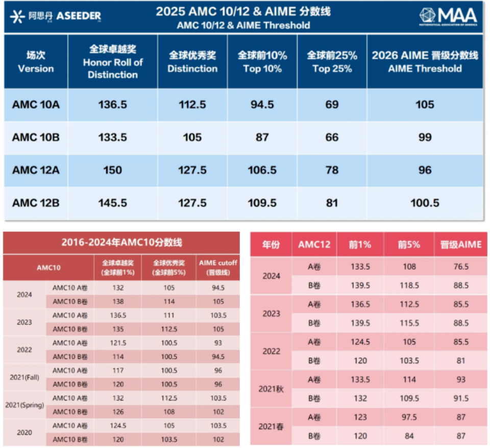 根据历年AMC10分数线,想要晋级AIME,至少要答对17道题,也就是70%的正确率,而想要拿到全球前1%,则只能错两三道题。